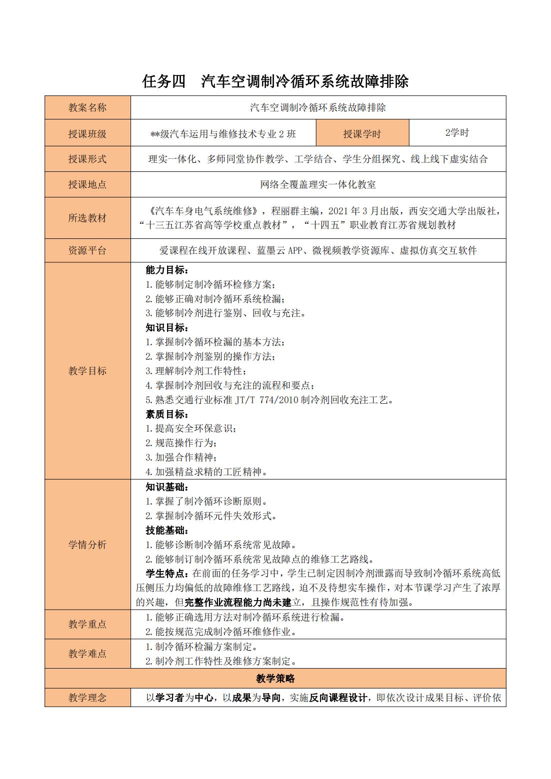 任务四 制冷循环故障维修