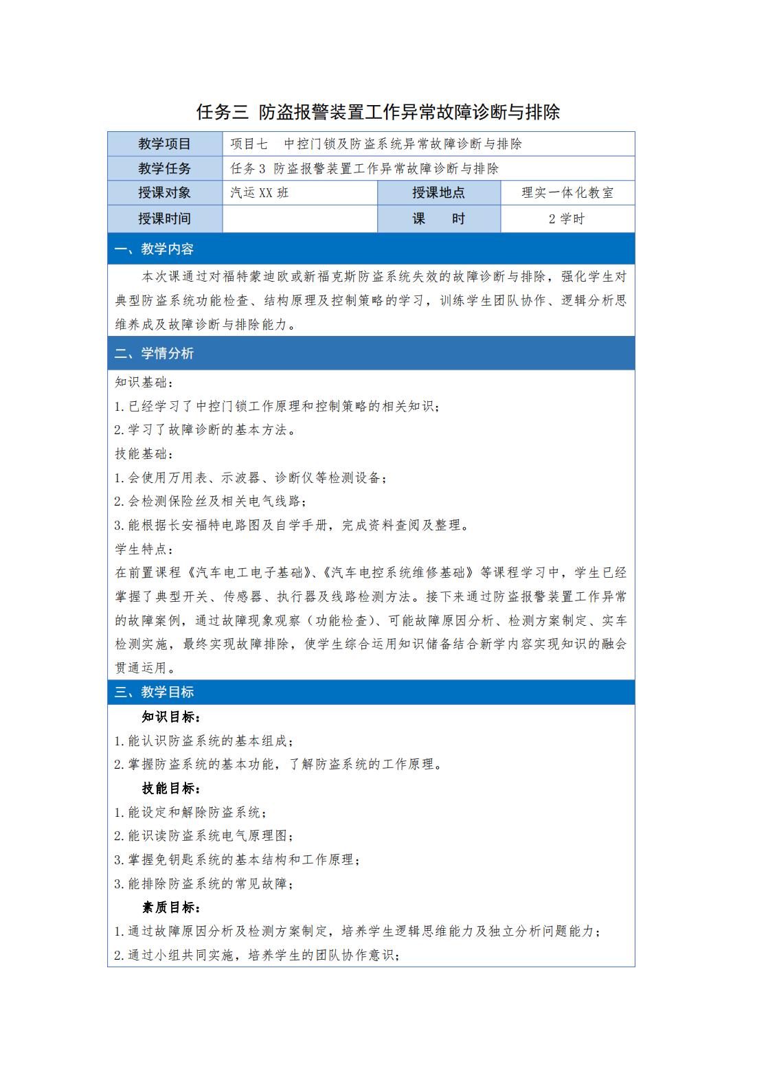 任务三 防盗报警装置工作异常故障诊断